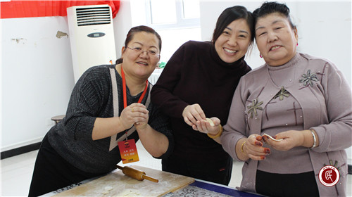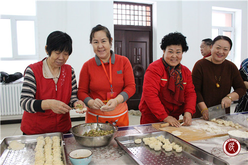 部分居民和服务基层干部上午早早就来到活动室做准备工作,一点所有人都到齐,热火朝天的忙碌起来,你和馅来我擀皮,双手翻飞中一个个饺子很快就成型了,社区合唱班的老师陈关根说:“我不会包饺子,就给大家讲讲冬至的故事、唱唱歌吧!”