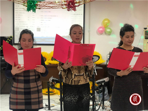 社区工作人员带来的蔓妙十六步、工作队的集体舞《我相信》、服务基层老师哈力克·阿不力米提的电子琴独奏《喜洋洋》、工作队副队长伊力亚尔·艾力的乐队演奏……精彩纷呈的节目迎来一浪又一浪热烈掌声,将在场观众带入了欢乐喜庆的氛围中,同时也充分展现了社区工作者们积极向上的精神风貌。工作队队员张晓兰与结亲对子吐松古丽·阿不都热依木的魔术表演悬念迭起、引人入胜,将晚会推向了高潮。最值得一提的是活动最后,社区夜校的学员们为大家展示了她们的学习成果,表演了诗朗诵《中华民族》,表达她们对祖国的热爱和坚决维护民族团结的决心。