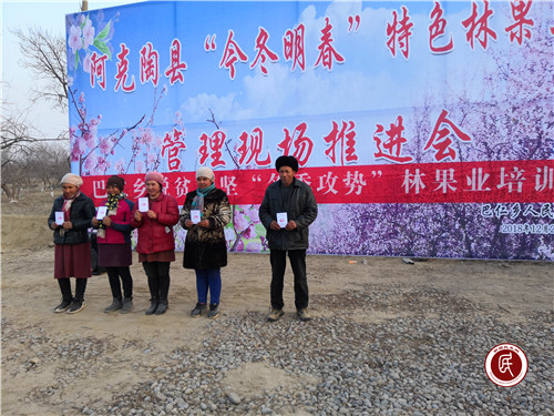 新疆民生网(付小杰)1月6日,为进一步提升脱贫攻坚“冬季攻势”各类培训工作成效,克州阿克陶县巴仁乡组织乡党政领导班子成员、各村第一书记、访惠聚工作队员、村“两委”成员、护林员以及农民群众等200余人在古勒巴格村开展脱贫攻坚“冬季攻势”培训工作现场推进会,主要围绕如何组织、课程设置、实践操作、培训成效等环节进行示范,县委副书记权良智出席了此次推进会并发表讲话。