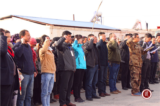 新疆民生网讯 (通讯员 言林 曾勤 )“我是中华人民共和国公民,我庄严宣誓:忠于我的祖国和人民,遵守宪法和法律,履行公民义务,团结各族兄弟姐妹……做一名爱国、敬业、诚信、友善、守法、知礼的中华人民共和国公民。”3月13日上午升国旗仪式结束后,自治区 “访惠聚”派驻阿克苏市人大、科技局、科协工作队、辖区居民、十户长、老党员和社区干部等300余人在社区的组织下,在国旗下进行庄严宣誓。