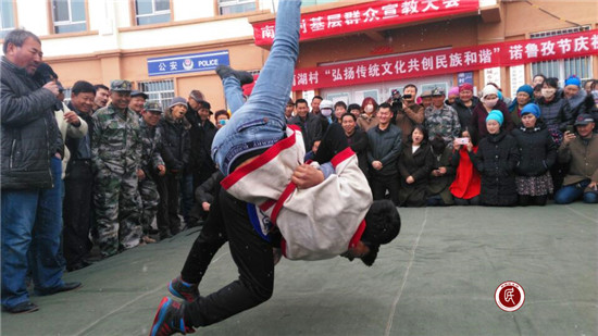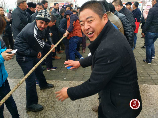 3月20日,奇台县人力资源和社会保障局驻古城乡南湖村工作队,与少数民族群众一起表演歌舞、押架、摔跤等传统活动,同庆诺鲁孜节。