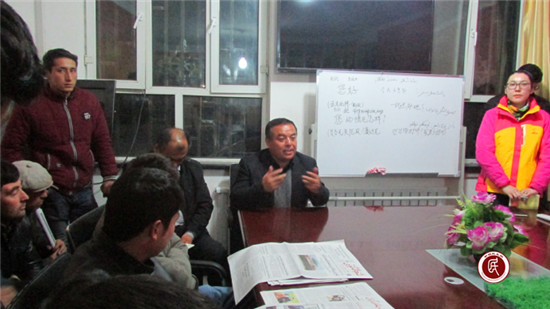 (图:克州林业局驻皮拉勒乡琼巴什村工作队利用夜校学习安排为期15天的宗教知识培训。)