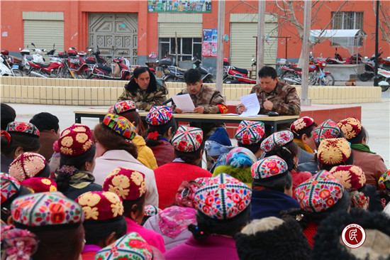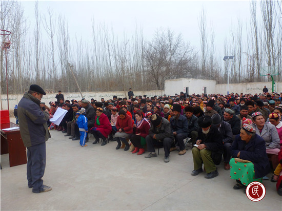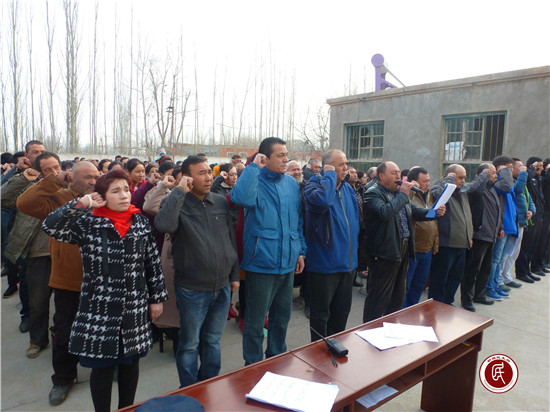 宣讲结束后,工作队与村民一道向吾布力喀斯木·买吐送发表的《致维吾尔族同胞觉醒书》进行了集体宣誓。“只有共产党才是我们幸福生活的指路明灯,如今,一项项惠民政策不断出台,我们的日子也越过越红火,村民脸上看到更多的是幸福和喜悦。如果有人想制造事端,破坏社会稳定,这样的行为我们绝不允许,也决不答应。”村民吐尔孙·吾斯曼在宣誓中表明了态度。