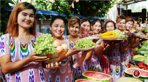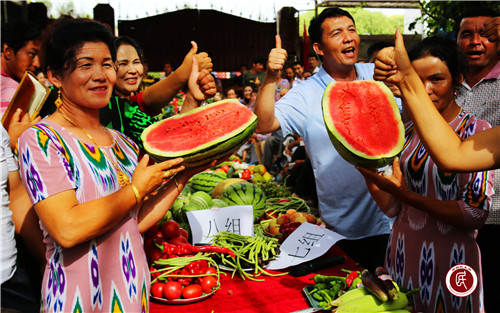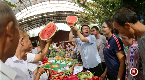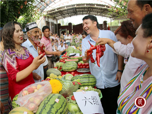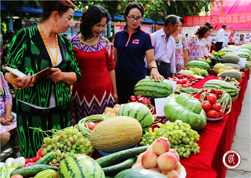 新疆民生网(颜寿林)7月27日,温宿县统计局驻克孜勒镇其克特村工作队组织村民举办瓜果蔬菜评比大赛,评委们对参赛瓜菜按标准要求认真打分评比。当日,驻村工作队会同村委会组织举办一场本村优质瓜果蔬菜评比大赛活动,当地村民拿出自产的优质绿色瓜菜参赛,由驻村工作队、村干部、村民代表组成评委组评选出1、2、3等奖9户村民进行表彭奖励,旨在本村掀起一场热爱劳动、依靠科学勤劳致富、崇尚现代文明新生活的热潮。