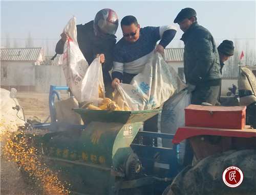 新疆民生网(罗清华)“太感谢你们了,要不是你们来帮我打玉米,我们夫妻两个人不知道要打到什么时候,真的太感谢工作队!”12月21日一大早,买买提·巴拉提家的晒场上已经是一片繁忙的景象,拜城县维吾尔医医院驻赛里木镇夏合买里斯村工作队队长和队员正热火朝天的地帮着买买提·巴拉提打玉米,而买买提·巴拉提不停地在说着感谢的话。