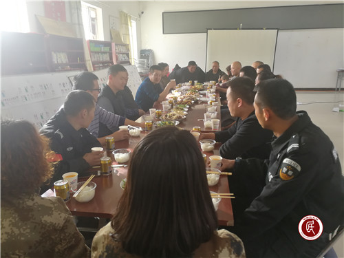 在用餐期间,局长杨亚军详细了解询问工作队生活状况,关心了解队员们的思想动态,并给队员们加油打气安心工作,对去年一年来驻村工作进行了肯定,要求工作队全体成员在新的一年充分发挥驻村工作队作用,扎实做好群众工作,积极推进脱贫攻坚,强化基层组织建设,落实好各项惠民政策,了解群众的所思所盼,切实为村民解决实际困难。并表示,单位会一如既往地支持沙梁湾村和工作队的各项工作,为驻村工作保驾护航。