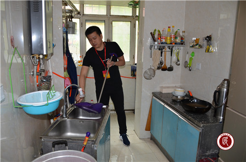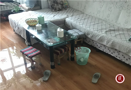 话不多说,尽早的清理积水,就能减少对楼下居民家中的损失。工作人员趟着水,鞋袜都已经湿透了,但没有丝毫没有顾忌退缩,抓紧时间清理积水,通过近20分钟的时间,工作人员将9号、11号两家居民家中的积水已基本清理干净。