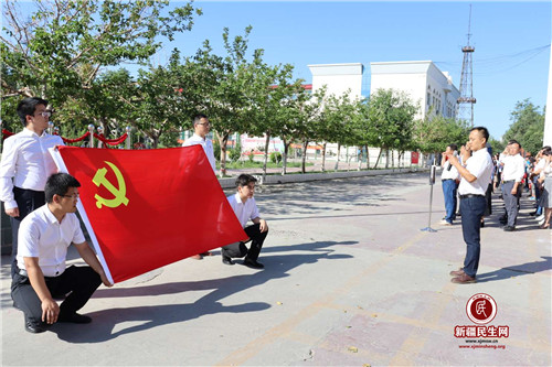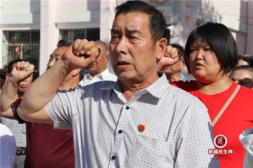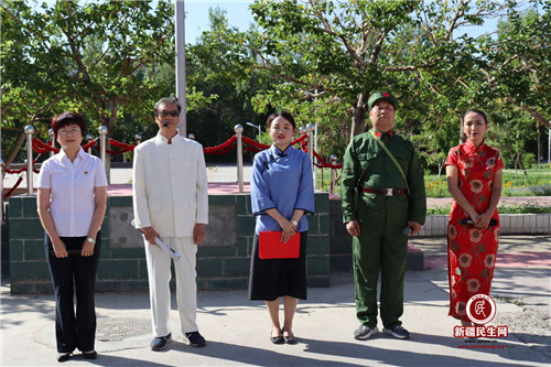 新疆民生网(李金龙 冯海霞 宫婷 阿瓦古丽)”红星闪闪放光彩,红星灿灿暖胸怀“来自北坡幼儿园李郡溪小朋友拉开了七·一升旗的序幕,伴着红船13名青年讨论的声音,毛主席在开国大典向全世界发出”中华人民共和国成立了“的宣言、南巡老人邓小平关于改革开放的讲话、习近平主席关于实现”中国梦 “的论述广播原音,随后在四位老党员身着不同年代的服装从队伍中昂首阔步走出,现场的群众也仿佛穿越到那个时代,纵览党的九十八年光辉历程,在场的640名群众深受感动,情不自禁高呼“祝党九十八周岁快乐”!