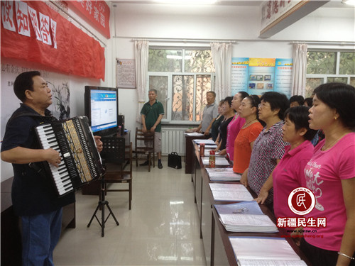 在2010年他还发挥自身优势组建了长征社区居民合唱队,合唱队队员多为退休老人,最大76岁,最小也50多岁,他耐心的从识谱、练声一点点教起,不辞辛苦、不厌其烦。功夫不负有心人,老年合唱队先后学会80余首歌曲,而这其中又多为红歌,《没有共产党就没有新中国》、《歌唱祖国》、《义勇军进行曲》等都是他们的拿手曲目。他带领着合唱队参加市、区、街道各种比赛、晚会,用音乐将爱国情传递出去。在合唱队的感召力下,长征社区各族居民像石榴籽一样抱团在一起。